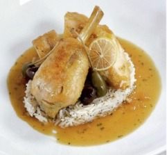 «Поджарьте 4 измельченные луковицы. Затем подрумяньте на горячем масле кусочки курицы. Сложите все в гусятницу, добавив два зубчика нарезанного чеснока, три разрезанных пополам лимона, две палочки корицы, шесть небольших кусочков натертого свежего имбиря, несколько зернышек и много свежего кориандра, 1 ч. ложку тмина, 1 звездочку бадьяна и стакан воды. Тушите в течение часа. Подавайте с рисом, к которому я добавляю несколько зернышек мака».