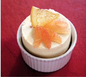 • Сохраните цедру. Сварите ее с сахаром и водой и, нарезав на кусочки, добавьте в мусс.
