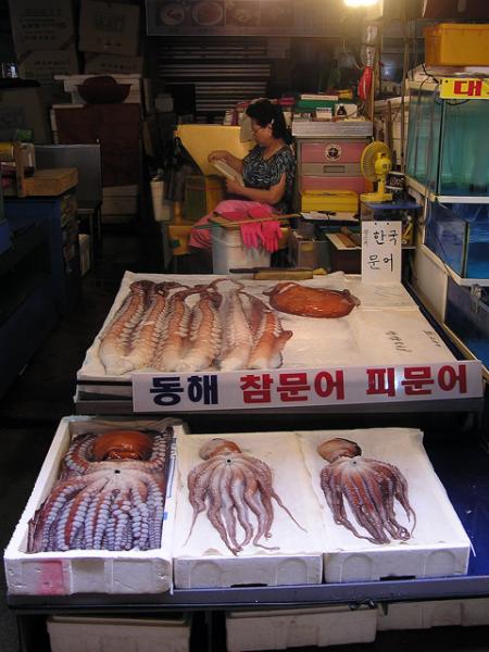Как есть: Правильно есть осьминога нужно с головы, тогда он не задушит Вас своими щупальцами. Но это для любителей острых ощущений, обычно же осьминога разрезают на небольшие кусочки, примерно по 1-2 см и подают с кимчи (культовое корейское блюдо – маринованная особым образом капуста). Кусочки щупальца заворачивают в кимчи и едят.