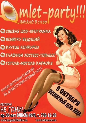 9 октября в 19:30. Омлет party в ресторане Не гони