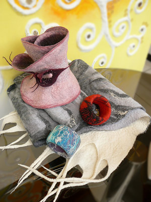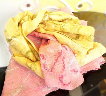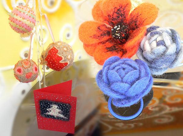 Войлочные шарфы,браслеты,елочные игрушки.Вязаные и кожаные броши,авторские новогодние открытки.