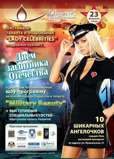 Фестиваль таланта и очарования "Lady celebrities" поздравляет мужчин с Днем защитника отечества и дарит Вам необыкновенную шоу-программу на основе конкурса красоты и таланта "Military Beauty".