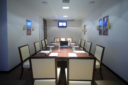 Конференц-зал оснащен комфортабельными столами и стульями, имеет хорошую систему кондиционирования воздуха. Режим работы конференц-зала — круглосуточно.