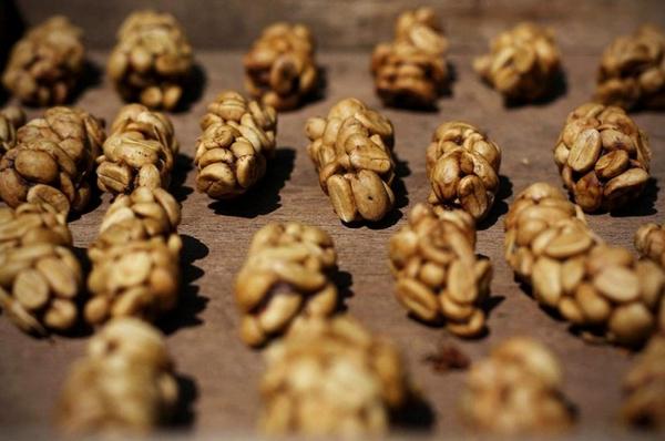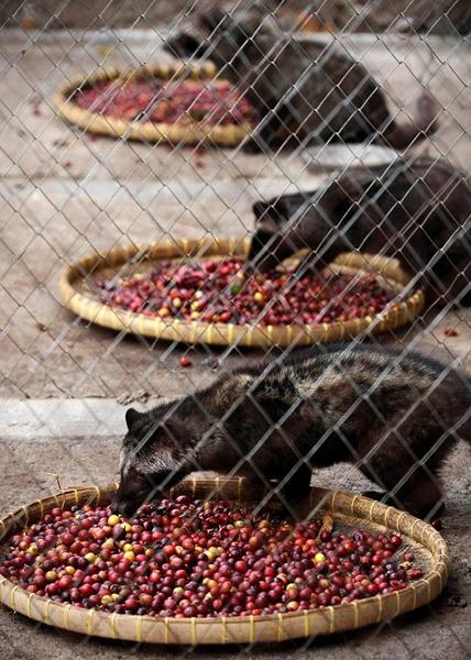 Кофейные плоды раскладывают на подносах для того, чтобы их съели циветты.