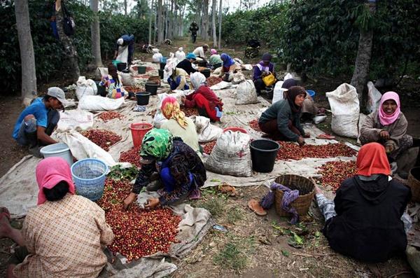 Фермеры собирают плоды кофейного дерева на плантациях Восточной Явы. Кофейные ягоды собираются в традиционной манере, после чего их скармливают циветтам. После того, как кофейные зерна выходят вместе с экскрементами, их чистят, сушат и слегка обжаривают.